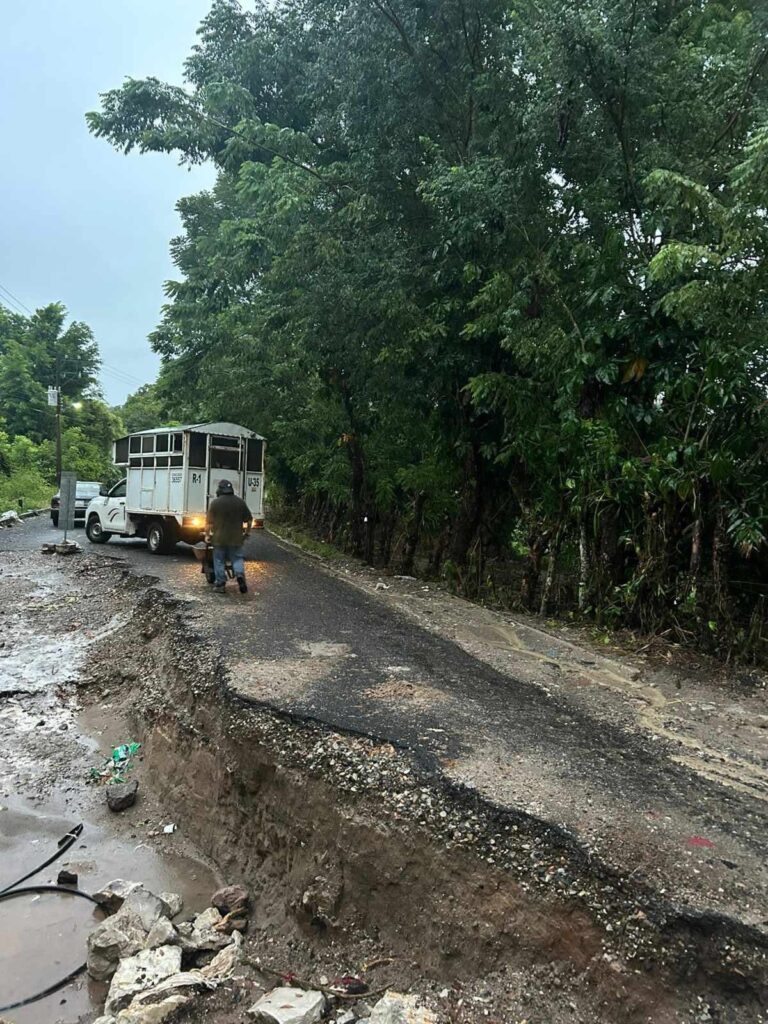 Se constató que circular por el tramo Zanzontla-Acateno, se ha convertido en una verdadera “danza con el peligro” para automovilistas y conductores del transporte público, ya que si coinciden en uno de los hundimientos, requieren hacer maniobras a un costado de los voladeros, al estar sólo habilitado un carril.
