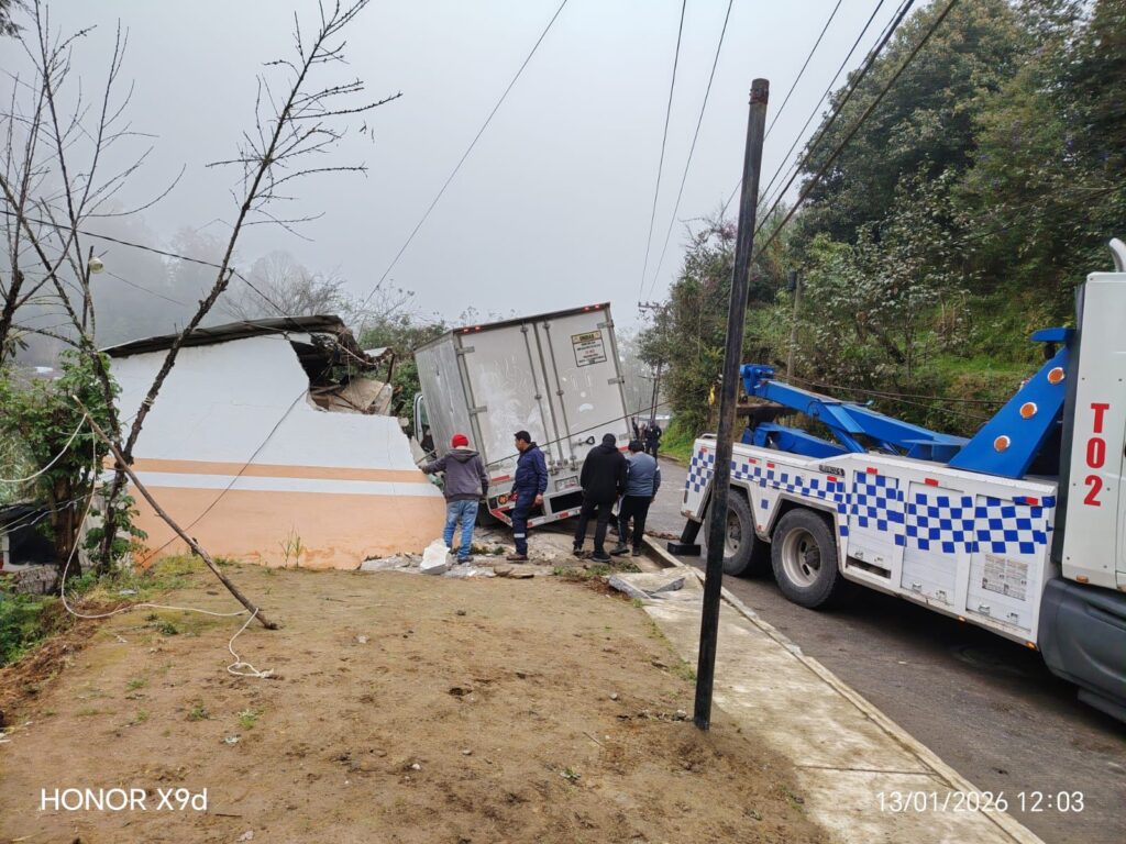 La unidad Freightliner con caja seca involucrada, que transportaba abarrotes, resultó severamente afectada, con daños en el parabrisas, lo que provocó cortaduras al conductor. Fue trasladado al Hospital IMSS No. 23, de esta misma ciudad, aunque después quedará bajo el resguardo de la SSPM de Teziutlán para que responda por los daños ocasionados.