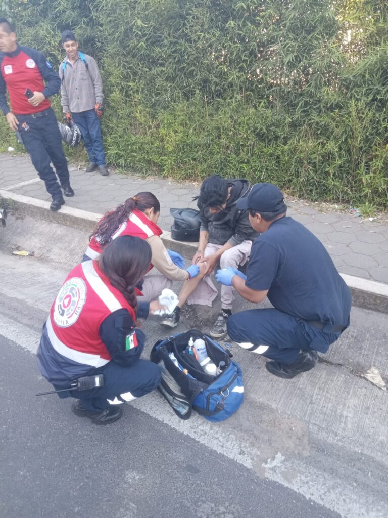 A la zona del percance llegaron elementos de Seguridad Pública, Vialidad Municipal y Protección Civil, quienes prestaron los primeros auxilios a José Antonio, de 23 años de edad, mismo que fue hallado policontundido y con múltiples abrasiones corporales; debido a que se negó a ser trasladado un hospital, el masculino fue estabilizado en el lugar por los paramédicos.