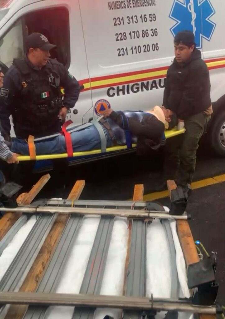 Asimismo, fue valorado José Aniceto Trejo, de 60 años de edad, originario de Atlixco, Puebla, quien viajaba en un vehículo Chrysler color gris con placas del estado de Puebla. El lesionado presentaba golpes múltiples y dolor en tórax, por lo que fue trasladado en la unidad Sierra 04 al IMSS San Cayetano.
