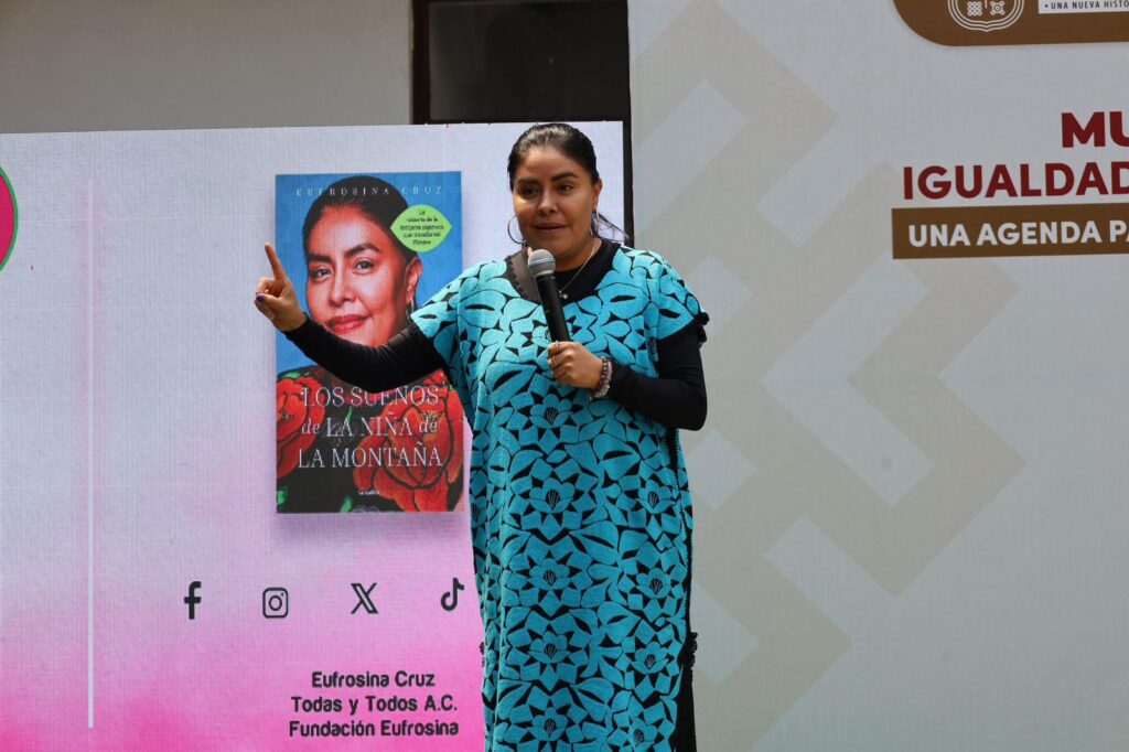 Por su parte, Eufrosina Cruz Mendoza compartió su experiencia como mujer indígena que enfrentó la negación de sus derechos políticos, lo que marcó el inicio de su trayectoria como defensora de los derechos de las mujeres. En su intervención, exhortó a las asistentes a romper barreras y asumir un papel activo en la vida pública.