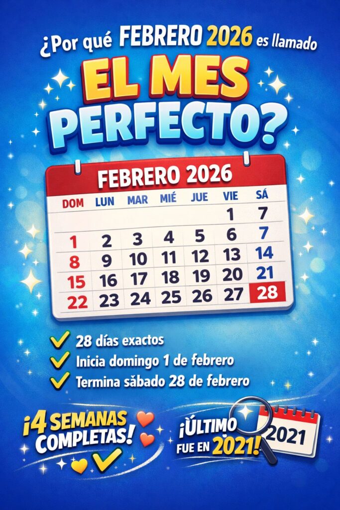 Tan sorprendente y misterioso como se lee, febrero de 2026 ha sido apodado “el mes perfecto” y en redes sociales el tema se ha vuelto viral entre usuarios ya que muchos aún se preguntan el por qué de este sobrenombre; Esto se debe a una característica poco común: este mes tiene exactamente 4 semanas completas.