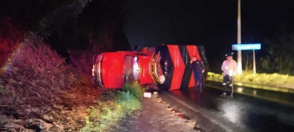 Los hechos ocurrieron en el punto conocido como La Escondida, donde elementos de Seguridad Pública y de Protección Civil, encontraron la camioneta Chevrolet, color rojo, sobre su costado izquierdo.